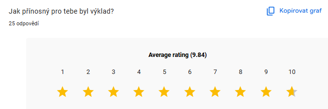 Zpětná vazba studentů mluví sama za sebe. Workshop první pomoci získal průměrné hodnocení 9,84 / 10, což potvrzuje, že šlo o velice přínosnou přednášku v rámci projektu Život v praxi.
